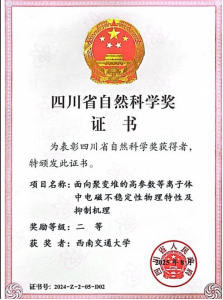 四川省科学技术奖由四川省人民政府设立,是全省科技领域最具权威性和影响力的奖项之一,覆盖自然科学、技术发明和科技进步等多个类别。近年来,西南交大物理科学与技术学院坚持开展有组织科研,等离子体物理团队瞄准磁约束核聚变关键问题,持续开展了高参数等离子体不稳定性物理特性及抑制机理的前沿物理研究。本次奖项的获得是物理学院坚持开展有组织科研的充分体现,同时也为学校“双一流”建设贡献力量。未来,学院将大力弘扬爱国、创新、求实、奉献、协同、育人的科学家精神,坚持有组织科研,以科技创新推动学校高质量发展。