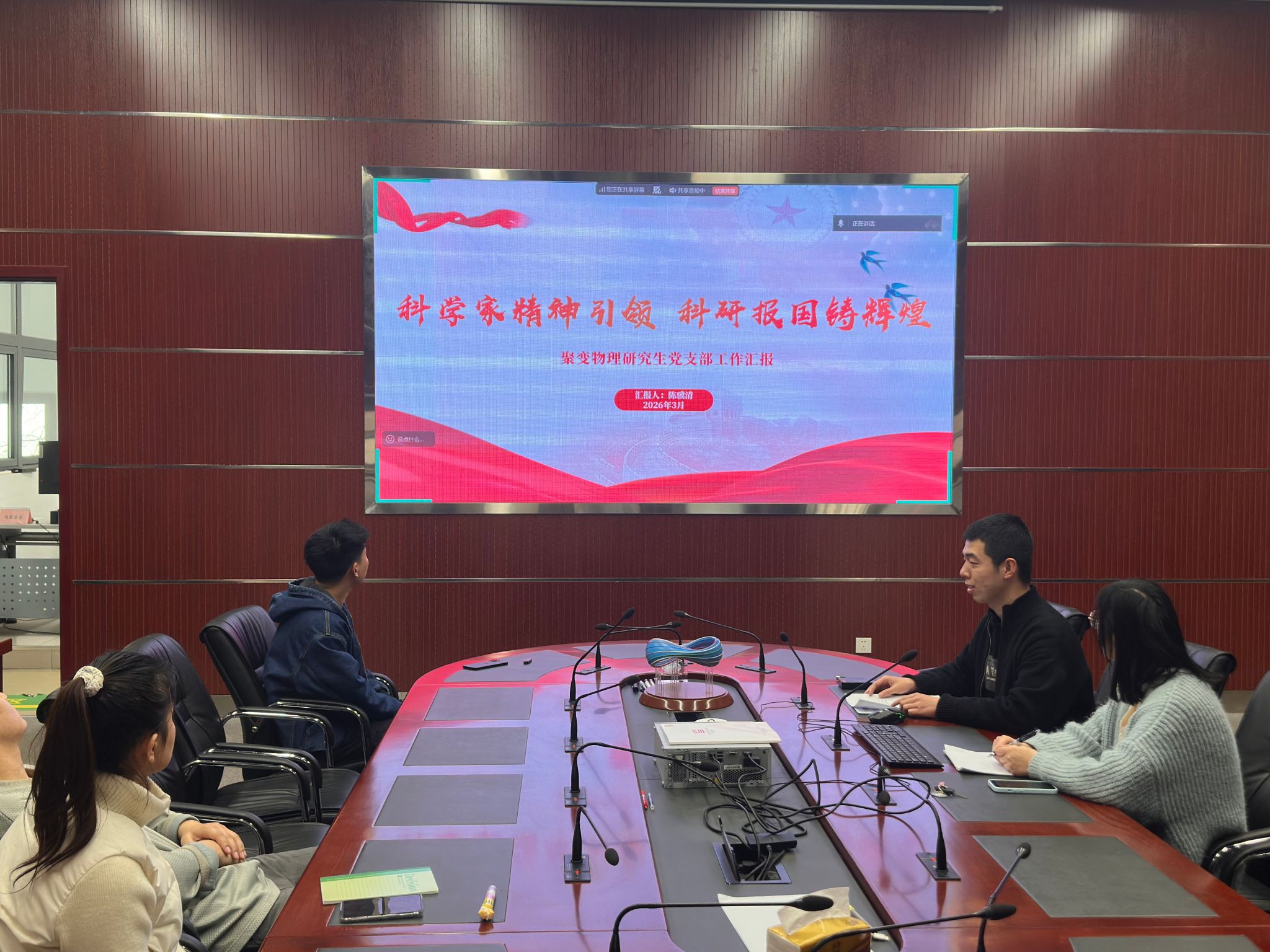 2026年3月5日,学院学生党支部组织开展“深入学习贯彻党的二十届四中全会精神,努力实现‘十五五’良好开局”主题党日,支部全体党员共同学习领会习近平在省部级主要领导干部学习贯彻党的二十届四中全会精神专题研讨班开班式上发表的重要讲话、习近平在二十届中央纪委五次全会上发表的重要讲话、习近平对国家自然科学基金委员会工作作出的重要指示以及教育部召开2026新春第一会全面部署推进学生身心健康工作的精神。各学生支部还召开专题组织生活会和开展民主评议党员工作。