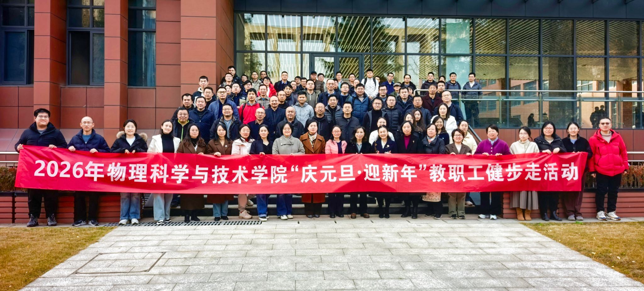 岁末将至,华章日新。为丰富教职工精神文化生活,倡导健康生活方式,增强团队凝聚力,2025年12月25日,物理学院工会组织开展“庆元旦•迎新年”教职工健步走活动,全院教职工踊跃参与。